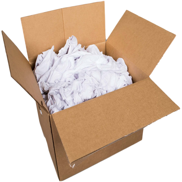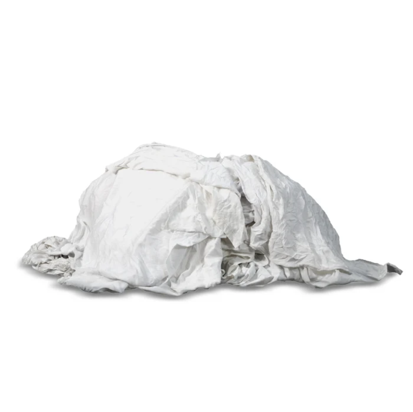 Made from reclaimed white cotton t-shirts, these soft, absorbent, and low-lint cleaning rags are cut between 12" and 24".
